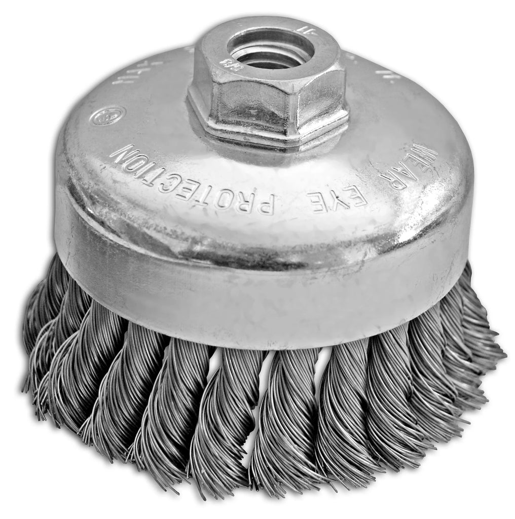 4" x 5/8-11" .020" Carbon Steel Knotted Cup Brush
